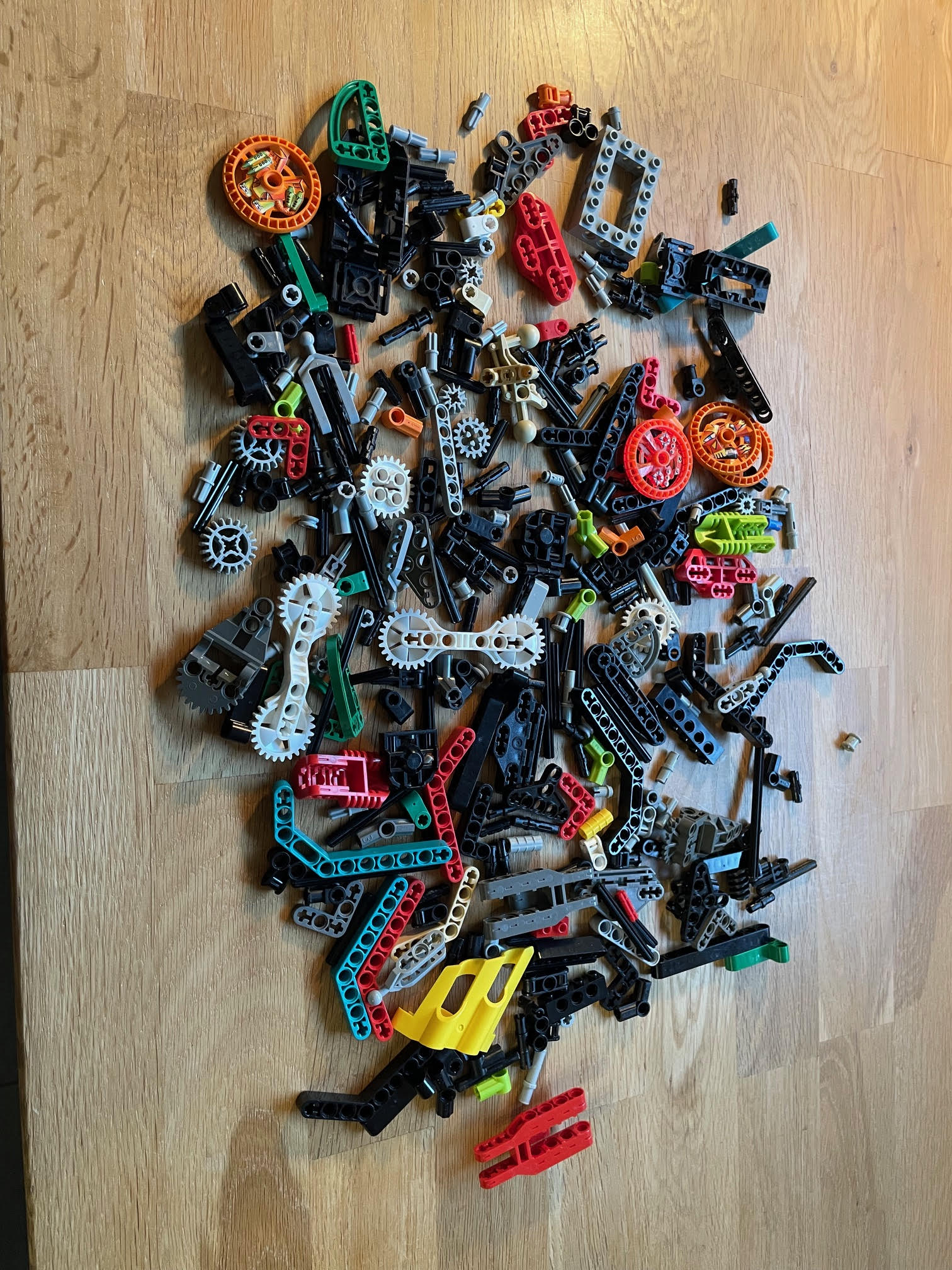 Technic 001 - 250gram blandet Technic lego, se billede for indholdet. Hvad du ser på billedet, er det der følger med.