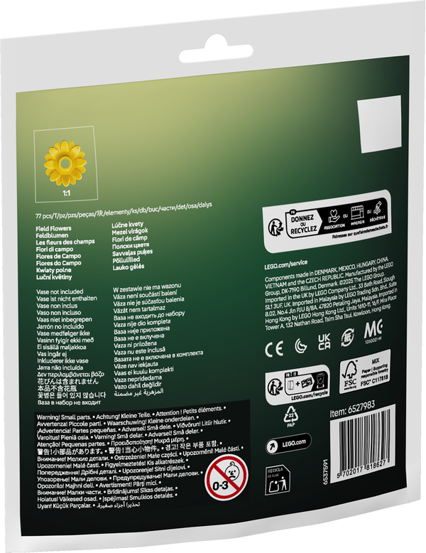 Så kreativitetens frø med LEGO® Botanicals byggesættet Markblomster (30701) til piger og drenge fra 9 år. De vilde blomster i minibuketten er fulde af autentiske detaljer, og planteentusiaster kan nyde at bygge en mælkebøtte i frø, en gul mælkebøtteblomst og et hvedeaks og derefter udstille dem på værelset. LEGO blomstersættet er et sjovt projekt for børn og naturelskere i alle aldre, og det vil være en gave eller overraskelse, som helt sikkert bringer glæde.