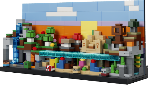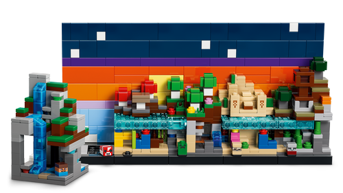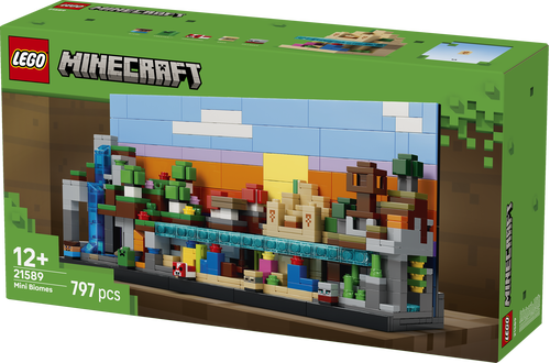 Byg et ikonisk stykke Minecraft®-indretning med LEGO® Minecraft sættet Mini-biomer (21589), et byggesæt til drenge og piger fra 12 år. Minecraft-spillere kan udstille deres passion for spillet, så alle kan beundre udstillingen, med 5 legetøjsbiomer og 5 mikrofigurer: Steve, Creeper™, mooshroom, skal og en røver. LEGO Minecraft sættet har 5 flytbare biomer: bjerg – med drypstenshule, ametyst-geode og vandfald; blomsterskov – med en grotte, lava og guld; svampemarker – med et koralrev, skibsvrag, 2 røde svampefyldte træer og en brun svamp; ørken – med et tempel, koralrev, hav, kaktusser og skattekiste; savanne – med en røverforpost, frodig grotte, akacietræer, græskar, lava og strand. Omfatter også en vendbar baggrund (dag/nat). Sættet er en god gaming-gave til Minecraft-spillere og LEGO fans. Og med LEGO Builder appen kan børn bygge med selvtillid – zoome, dreje i 3D og følge deres fremskridt med letforståelig digital vejledning. Byg-selv-sættet indeholder 797 elementer.