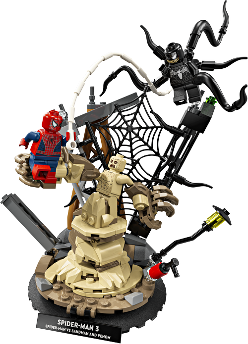 Gør Marvel Studios-filmen Spider-Man 3 levende med LEGO® ǀ Marvel sættet Episk kamp: Spider-Man mod Sandman (76334), et byggesæt til børn, drenge og piger fra 9 år. Det indeholder 3 ikoniske minifigurer – Spider-Man, Venom og Sandman – i episke rollelegsbaserede eventyr og enorme udstillingsmuligheder. Legesættet omfatter en stjernebesætning af figurer fra filmen og masser af interaktive elementer: Spider-Man svinger sig ned fra et tårn i et spindelvævsreb, Sandman rejser sig fra murbrokkerne med en kæmpearm, og Venom angriber med 4bevægelige tentakler. Børn kan udstille LEGO modellen på værelset med den robuste base og navnepladen eller tage minifigurerne af og udspille deres egne historier. Sættet er en god gaveidé som fødselsdagsgave til unge superhelte, LEGO byggere og fans af Spider-Man-merchandise. Og med LEGO Builder appen kan børn bygge med selvtillid – zoome, dreje i 3D og følge deres fremskridt med letforståelig digital vejledning. Byg-selv-sættet indeholder 201 elementer.