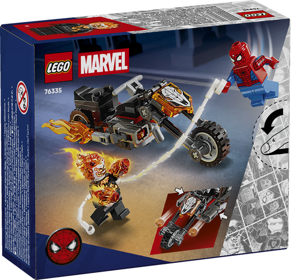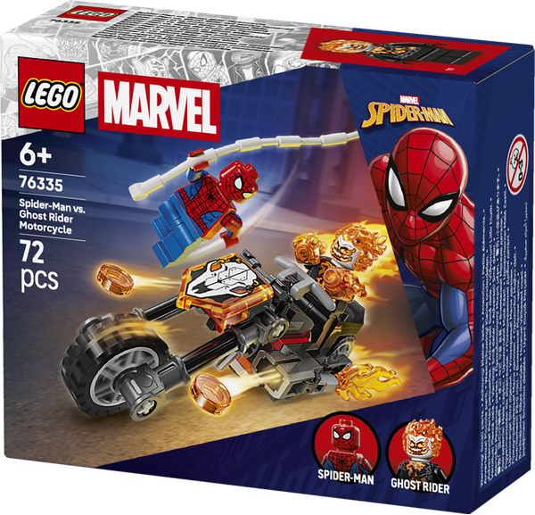 Kickstart en superheltejagt i høj fart med byggelegetøjet Spider-Man mod Ghost Rider på motorcykel (76335) til drenge og piger fra 6 år. LEGO® ǀ Marvel byggesættets kampklare motorcykel og 2 dynamiske minifigurer af Spider-Man og Ghost Rider sætter gang i børns fantasifulde leg. Minifiguren af Ghost Rider er afbildet som et skelet med flammer, der stikker ud fra hans hænder og hoved. Hans ikoniske motorcykel har 2 flammende udstødningsrør og 2 indbyggede knopskydere. Spider-Man-minifigurens spindelvævsreb kan fastgøres til motorcyklen og giver uendelige muligheder for rolleleg, når figurerne kæmper på og omkring det oktanfyldte køretøj. Legesættet er en god gaveidé som fødselsdagsgave til unge superhelte, LEGO-byggere og fans af Spider-Man-merchandise og -samlerobjekter. Og med LEGO Builder appen kan børn bygge med selvtillid – zoome, dreje i 3D og følge deres fremskridt med letforståelig digital vejledning. Byg-selv-sættet indeholder 72 elementer.