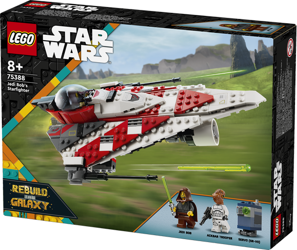 Introducer børn til den mystiske karakter fra et LEGO® Star Wars™ sæt fra 2002, som blev populær blandt fans, med Jedi Bobs stjernejager (75388). LEGO Star Wars byggelegetøjet er en cool fødselsdagsgaveidé til drenge, piger og enhver fan fra 8 år og indeholder en stjernejager med cockpit, der kan åbnes, 2 fjederbetjente skydere og udtrækkeligt landingsstel. Udspil spændende eventyr med 2 LEGO Star Wars minifigurer: Jedi Bob og en Ackbar-soldat samt en LEGO droidefigur af Servo (SR-V0), som set i Disney+serien LEGO Star Wars: Genopbyg galaksen. Tilbehør såsom Jedi Bobs lyssværd, der kan klikkes fast under det klodsbyggede legetøjsrumskib, en karton blå mælk og et bananelement, som begge kan opbevares i opbevaringsrummet, gør oplevelsen endnu sjovere. Dette samlerobjekt af et byggelegetøj går godt med sættene 75389 Mørkefalken og 75393 Kombimodel: TIE-jager og X-wing (sælges separat), som også indeholder fartøjer og figurer fra LEGO Star Wars: Genopbyg galaksen.