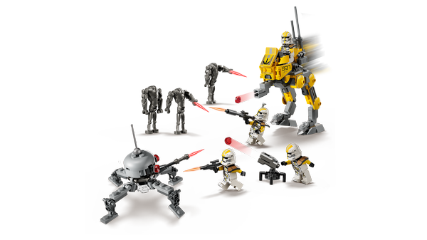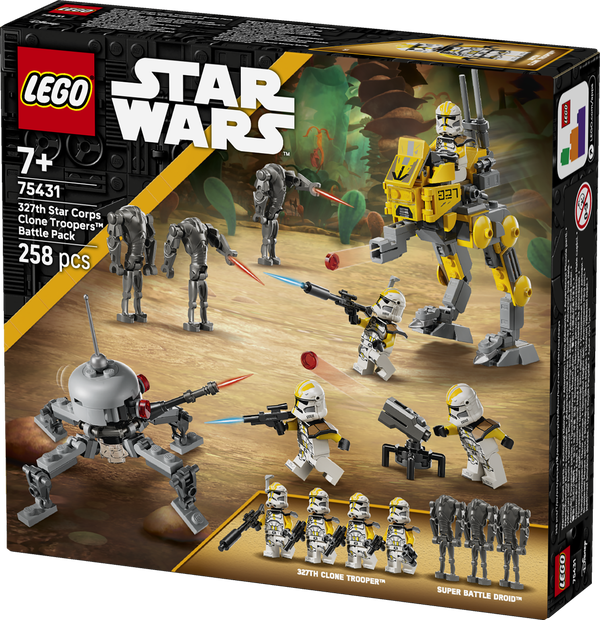 Byg en deling klonsoldater fra 327. stjernekorps, og kæmp mod superkampdroiderne med dette LEGO® Star Wars: Revenge of the Sith™ Battle Pack-sæt (75431) til børn. Byggesættet indeholder 4 LEGO Star Wars™ minifigurer af klonsoldater i de ikoniske dragter fra 327. stjernekorps og 3 LEGO figurer af superkampdroider. Star Wars bygge- og legesættet indeholder også en AT-RT-ganger med et cockpit til en LEGO minifigur, en knopskyder og opbevaring til blaster og kikkert samt et tårn med knopskyder til klonsoldater, mens superkampdroiderne har en edderkoppedroide, der inspirerer til episke legekampe. Legetøjssættet er en supergod Star Wars gaveidé til drenge, piger og unge fans fra 7 år og enhver, der elsker LEGO byggeri, og det byder på en sjov byggeoplevelse og timevis af actionfyldt leg. LEGO Builder appen indeholder digitale vejledninger samt zoom-, dreje- og visningsværktøjer, der forbedrer børns byggeoplevelse. Samlesættet indeholder 258 elementer.