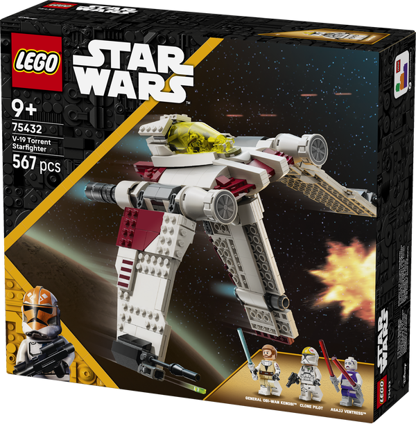 Slå dig sammen med heltefiguren general Obi-Wan Kenobi i kamp mod Asajj Ventress, og sus afsted mod action fra LEGO® Star Wars: The Clone Wars™ med byggelegetøjet V-19 Torrent-stjernejager (75432) til børn. Stjernejageren er en fantastisk Star Wars™ gaveidé til drenge, piger og fans fra 9 år. Den har 2 knopskydere og vinger, der kan justeres til flyveposition og landingstilstand. Midtervingen kan også bruges som håndtag til "flyvning". Bygge- og legesættet indeholder 3 LEGO Star Wars minifigurer, bl.a. Asajj Ventress med 2 røde lyssværd med særlige buede greb og general Obi-Wan Kenobi med et blåt lyssværd til actionfyldte dueller. Gør børns kreative oplevelse endnu bedre med LEGO Builder appen, hvor de kan zoome ind på og dreje en digital 3D-version af Star Wars stjernejageren, mens de bygger. Fartøjet og figurerne i sættet kan bruges sammen med andre LEGO Star Wars byggesæt (sælges separat) for at få endnu flere muligheder for fantasifulde legekampe. Sættet indeholder 567 elementer.
