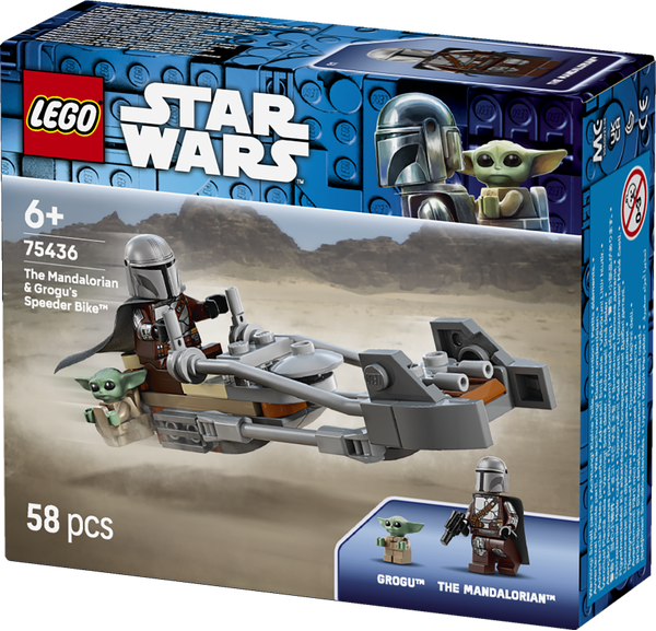 Genskab spændende scener på Tatooine fra sæson 1 af Star Wars: The Mandalorian™ med det seje byggesæt. Den klodsbyggede LEGO® udgave af Mandalorianeren og Grogus speederbike (75436) er en fantastisk lille gave til børn, drenge og piger fra 6 år. Sæt LEGO minifiguren af Mandalorianeren i førersædet, og put LEGO figuren af Grogu i tasken, der er fastgjort på siden. Klik Mandalorianerens blasterriffel fast bag på speedercyklen, så den er klar til action. Det inspirerende byggelegetøj er designet til hurtigt byggeri, så børn kan komme i gang med at lege fantasifulde eventyr med ikoniske Star Wars™ karakterer. Børn kan bygge med selvtillid ved hjælp af LEGO Builder appen, hvor de kan zoome, dreje i 3D og følge deres fremskridt med letforståelig digital vejledning. Byg-selv-sættet indeholder 58 elementer.