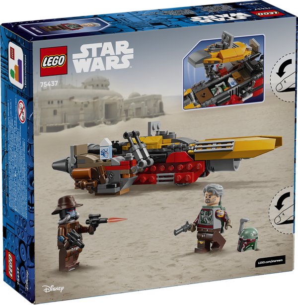 Slå dig sammen med Cobb Vanth i tempofyldte kampe mod Cad Bane med det seje LEGO® Star Wars™ byggesæt (75437) med et fartøj til børn. Byg en detaljeret LEGO model af Cobb Vanths fantastiske speeder fra sæson 2 af Star Wars: The Mandalorian™. Speederen har et førersæde til LEGO minifiguren af Cobb Vanth, en holder til hans pistol og et hemmeligt rum til ikonisk tilbehør som Boba Fetts hjelm og en karton med banthamælk. LEGO minifiguren af Cad Bane er udstyret med 2 blasterpistoler, og Cobb har en jetpack til actionfyldt leg i luften. Byggelegetøjet er fantastisk til at sætte gang i børns fantasi gennem leg og perfekt som en gave til drenge, piger og fans af Star Wars: The Mandalorian eller Star Wars: Boba Fett™ fra 7 år. Børn kan bygge nemt med LEGO Builder appen, hvor de kan zoome, dreje modeller i 3D, se digitale vejledninger, gemme projekter og følge deres fremskridt. Byg-selv-sættet indeholder 207 elementer.